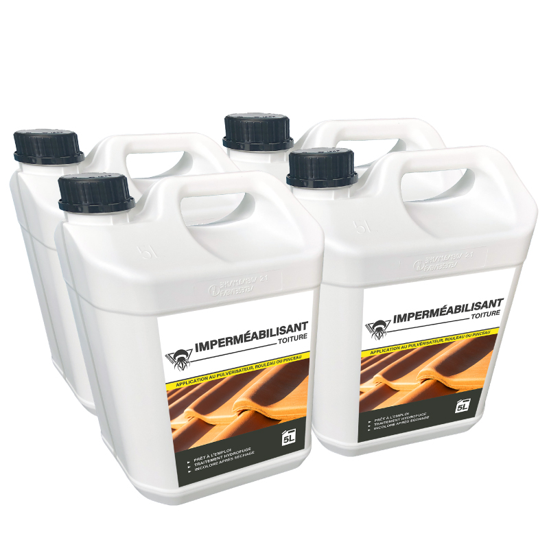 Ce traitement hydrofuge est destiné à l'imprégnation des toitures à pente de plus de 10%. Grâce à sa formule unique, il offre une protection longue durée contre les intempéries et l'incrustation des mousses et lichens. Avec son effet perlant, il permettra à l'eau de ruisseler sur les tuiles et d'être rejetée par la pente. Il s'applique en une simple couche au pulvérisateur, au rouleau ou au pinceau. Il est totalement invisible après séchage et sans risque d'apparition d'auréoles blanchâtres, même en cas de surdosage. Consommation moyenne : 5 m2 au litre.